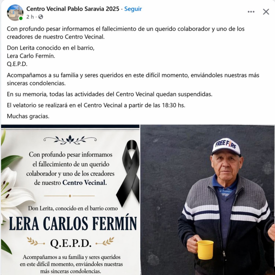 La víctima fue Carlos Fermín Lera, un vecino de 60 años muy querido en la comunidad.