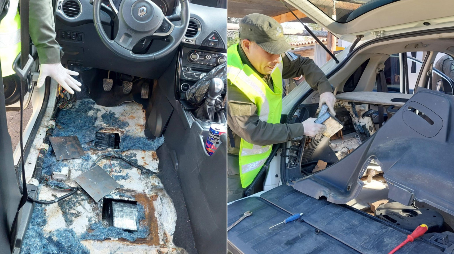 El vehículo, un Renault Koleos, fue inspeccionado por efectivos de la Sección “Cafayate”, dependiente del Escuadrón 45 “Salta”. Durante el control detectaron un doble fondo en el sector del piso y el lateral trasero del rodado, donde encontraron 50 paquetes rectangulares con características típicas del narcotráfico.