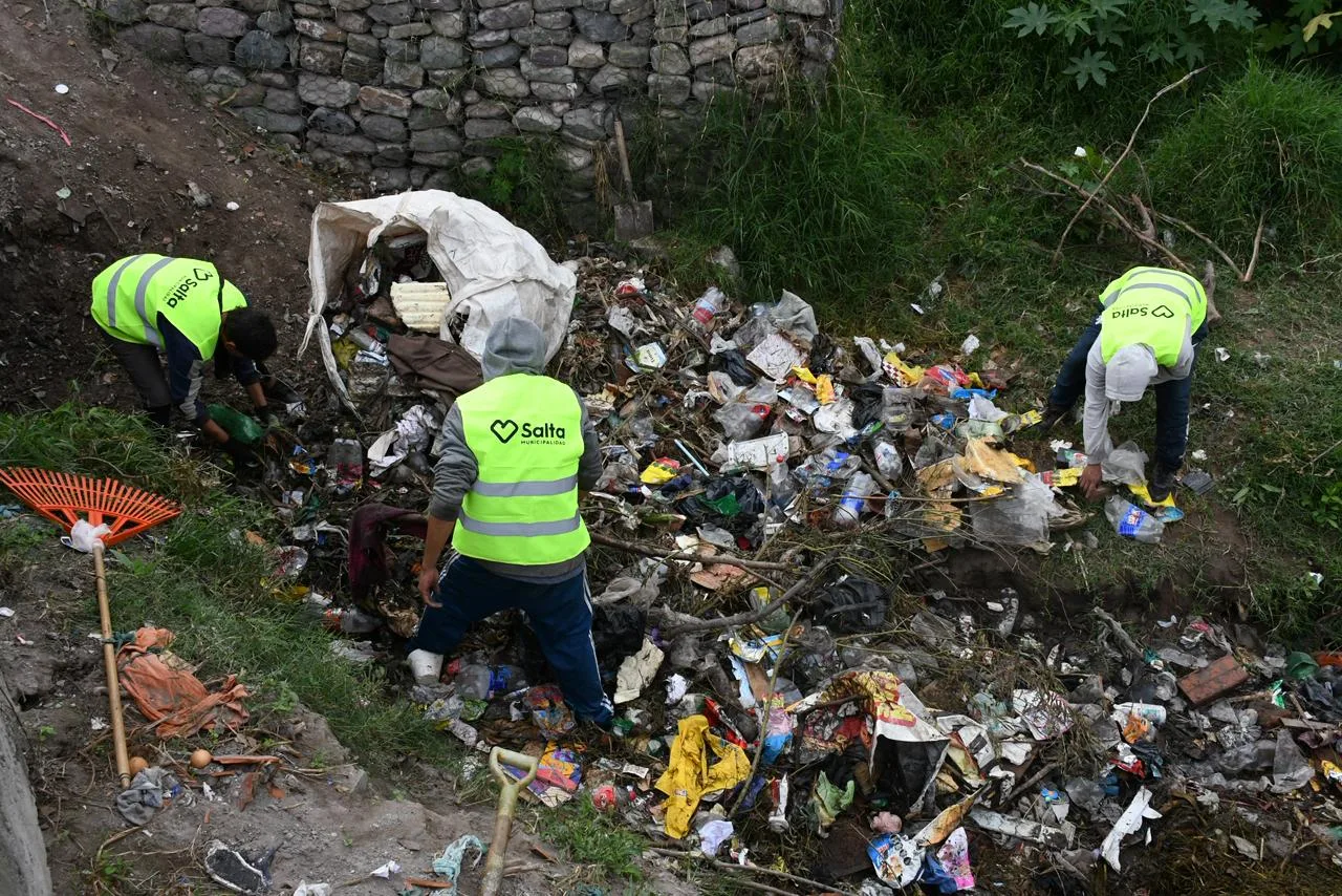 Basural en desagüe pluvial: limpiaron un foco infeccioso junto al río Arenales